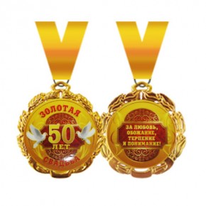 ГлавнаяКаталогСвадебная продукцияСвадебные награды, дипломы, грамоты, лентыМедаль "Золотая свадьба 50 лет"