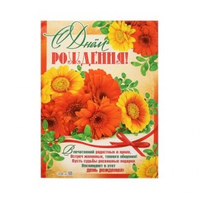 ГлавнаяКаталогКарнавалОткрытки. плакаты. наклейкиПлакаты праздничныеПлакат "С Днем Рождения!" герберы 1230187