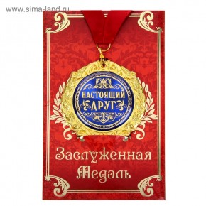 ГлавнаяКаталогКарнавалЗначки. медали. ленты. колокольчики. ордена. кубкиМедаль в подарочной открытке "Настоящий друг"