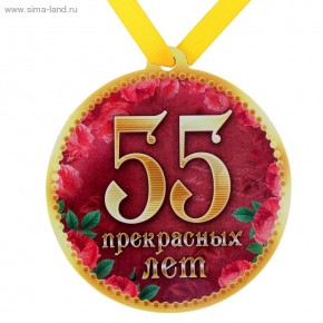 ГлавнаяКаталогКарнавалЗначки. медали. ленты. колокольчики. ордена. кубкимедаль полимер на магните 55 чудесных лет 8,5*9,2 см 650286