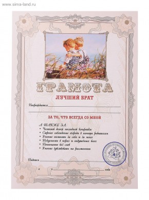 Грамота "Лучший брат" 784454 купить в интернет-магазине по доступной цене