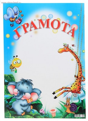 ГлавнаяКаталогКарнавалДипломы. вымпелы. грамоты. наградыГрамота детская "Слоник и его друзья" 533621