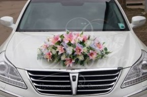 • Сердца на радиатор из цветов+фатин на капот Ср63 52х90х5 см розовый-белый 511202