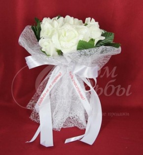ГлавнаяКаталогСвадебная продукцияСвадебные украшения. рушники.Букет "Паутинка"с надп. ДС-012834