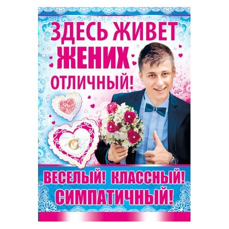 ГлавнаяКаталогСвадебная продукцияПлакаты и гирляндыЗдесь живет жених отличный!