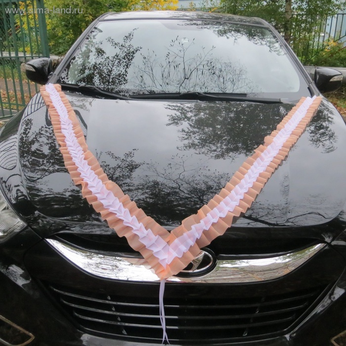 ГлавнаяКаталогСвадебная продукцияУкрашения на автомобильЛента на капот V-образная "Волна", шёлк, 280*10 см, персиково-белая