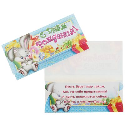 ГлавнаяКаталогКарнавалОткрытки. плакаты. наклейкиОткрытки. конверты для денег, книги пожеланийКонверт для денег "С днем рождения!", зайка 1145396
