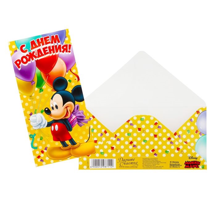 ГлавнаяКаталогКарнавалОткрытки. плакаты. наклейкиОткрытки. конверты для денег, книги пожеланийОткрытка-конверт для денег "На большую мечту", Микки Маус