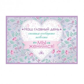 ГлавнаяКаталогСвадебная продукцияПриглашения на свадьбуПриглашение на свадьбу Наш главный день. Спешим сообщить новость: "Мы женимся!"