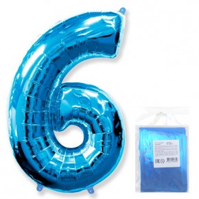 • FM Фигура Цифра 6 голубая 40"/102см шар фольга
