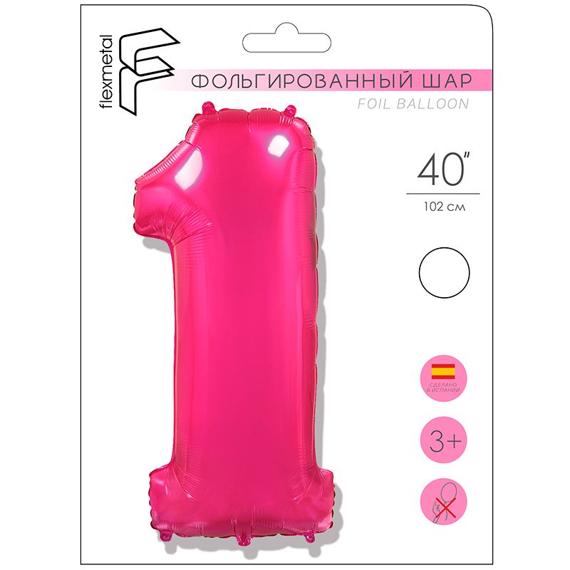 FM Фигура Цифра 1 розовая 40"/102см шар фольга купить в интернет-магазине по доступной цене