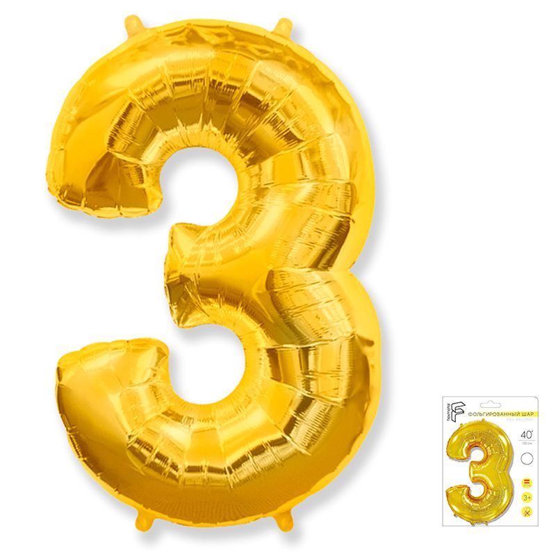 И 40 Цифра "3" золото в упаковке / Three / 1 шт /, Фольгированный шар купить в интернет-магазине по доступной цене