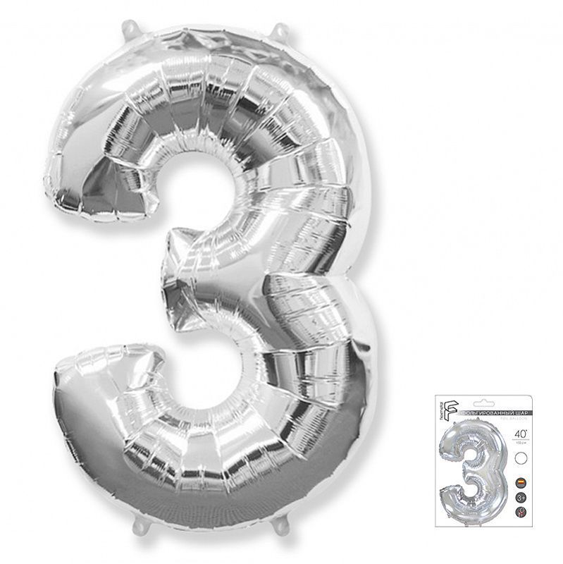 FM Фигура Цифра 3 серебро 40"/102см шар фольга купить в интернет-магазине по доступной цене