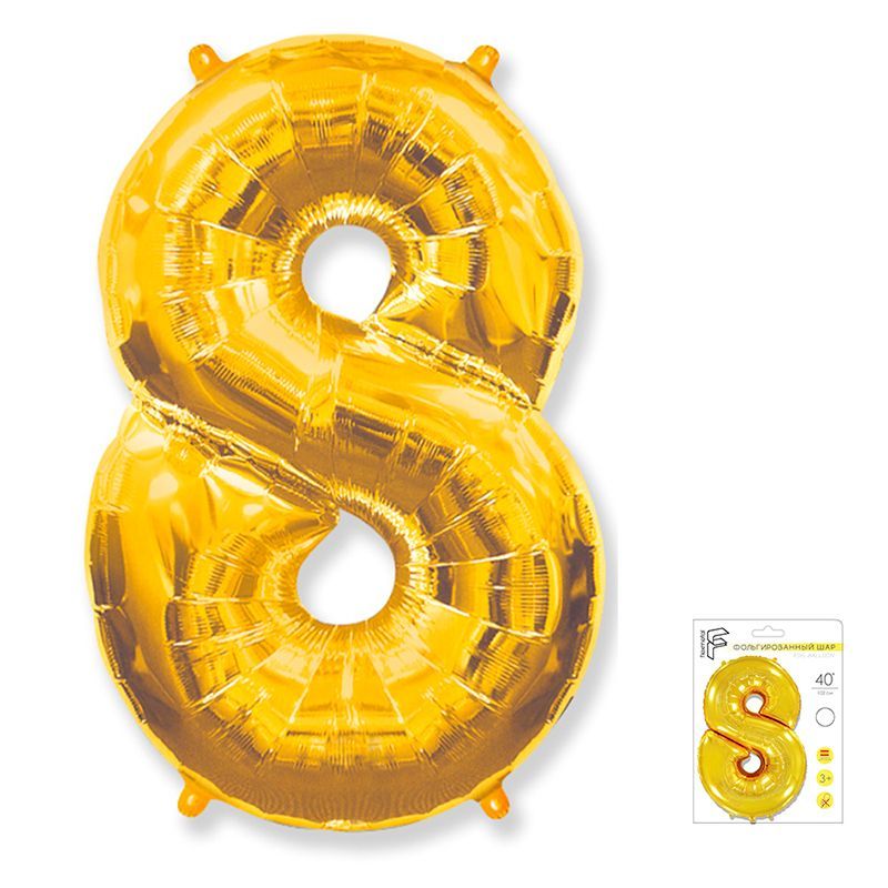И 40 Цифра "8" золото в упаковке / Eight / 1 шт /, Фольгированный шар купить в интернет-магазине по доступной цене
