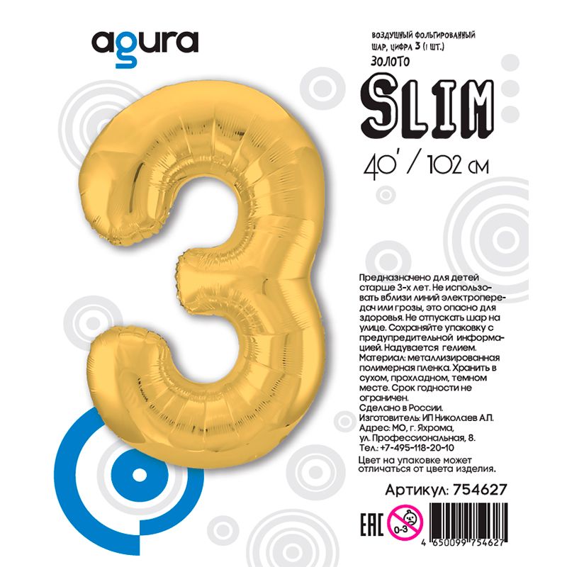 Аг 40 Цифра "3" Золото Slim в упаковке / 1 шт / (Россия) купить в интернет-магазине по доступной цене