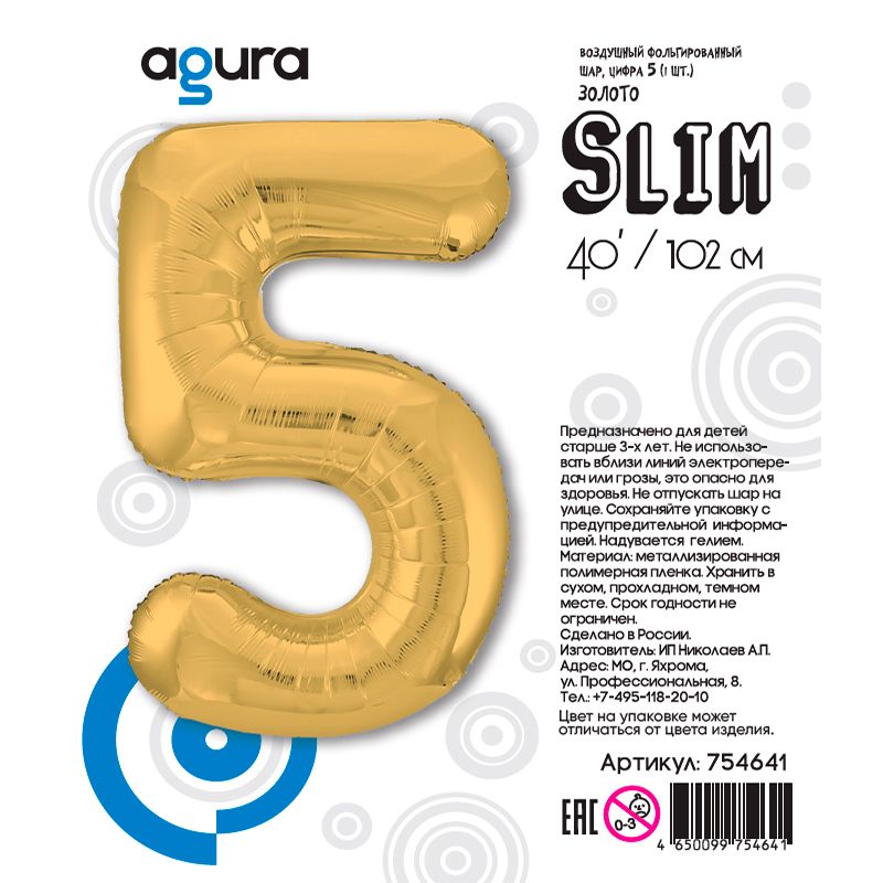Аг 40 Цифра "5" Золото Slim в упаковке / 1 шт / (Россия) купить в интернет-магазине по доступной цене