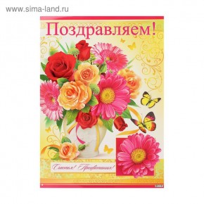 ГлавнаяКаталогКарнавалОткрытки. плакаты. наклейкиПлакаты праздничныеПлакат "Поздравляем!" Розы, бабочки 1442117