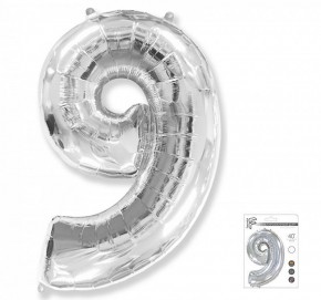 FM Фигура Цифра 9 серебро 40"/102см шар фольга купить в интернет-магазине по доступной цене
