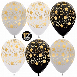 Шар (12''/30 см) Звезды контур, Ассорти (005/080/390), кристалл, 5 ст, 25 шт. купить в интернет-магазине по доступной цене