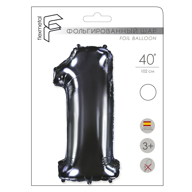 И 40 Цифра "1" черный в упаковке/ One / 1 шт / Фольгированный шар купить в интернет-магазине по доступной цене
