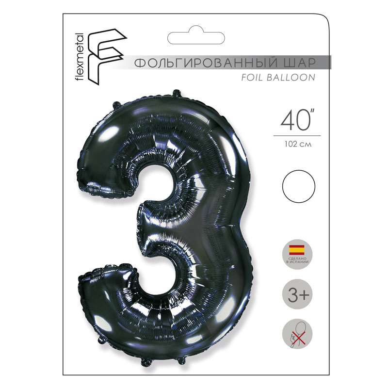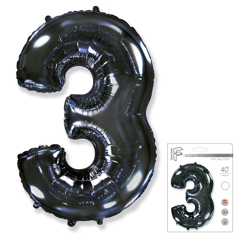 И 40 Цифра "3" черный в упаковке / Three / 1 шт / Фольгированный шар купить в интернет-магазине по доступной цене