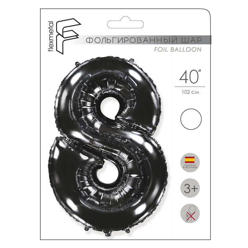 И 40 Цифра "8" черный в упаковке/ Eight / 1 шт / Фольгированный шар купить в интернет-магазине по доступной цене