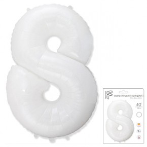 И 40 Цифра "8" белый в упаковке/ Eight / 1 шт / Фольгированный шар купить в интернет-магазине по доступной цене