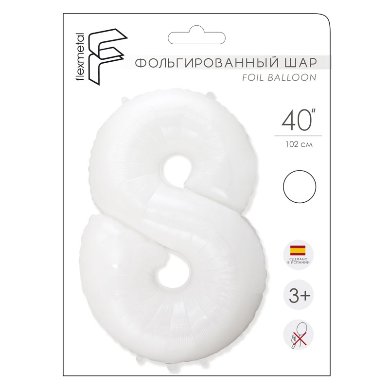 И 40 Цифра "8" белый в упаковке/ Eight / 1 шт / Фольгированный шар купить в интернет-магазине по доступной цене