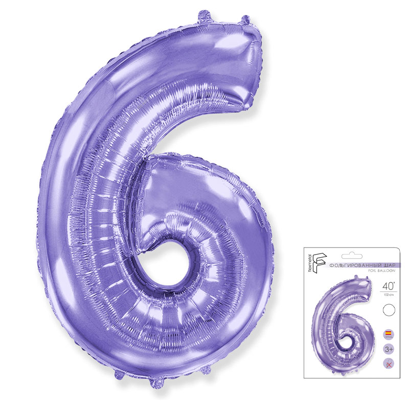 И 40 Цифра "6" сиреневый в упаковке / Six / 1 шт /, Фольгированный шар купить в интернет-магазине по доступной цене