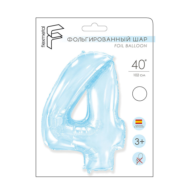 И 40 Цифра "4" светло-голубой в упаковке/ Four / 1 шт /, Фольгированный шар купить в интернет-магазине по доступной цене