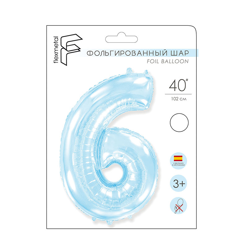И 40 Цифра "6" светло-голубой в упаковке / Six / 1 шт /, Фольгированный шар купить в интернет-магазине по доступной цене