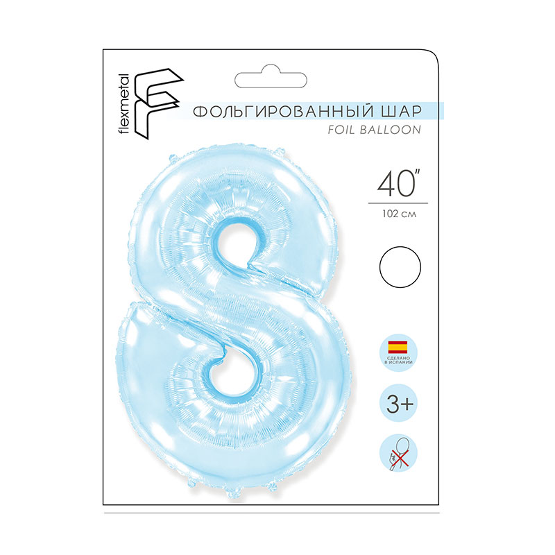 И 40 Цифра "8" светло-голубой в упаковке/ Eight / 1 шт /, Фольгированный шар купить в интернет-магазине по доступной цене