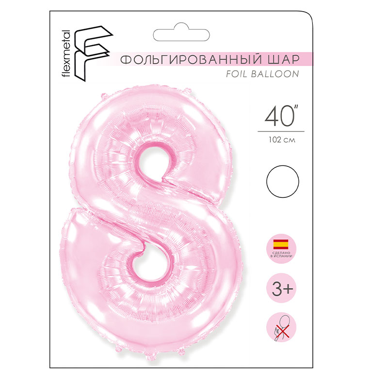 И 40 Цифра "8" розовый в упаковке / Eight / 1 шт / Фольгированный шар купить в интернет-магазине по доступной цене