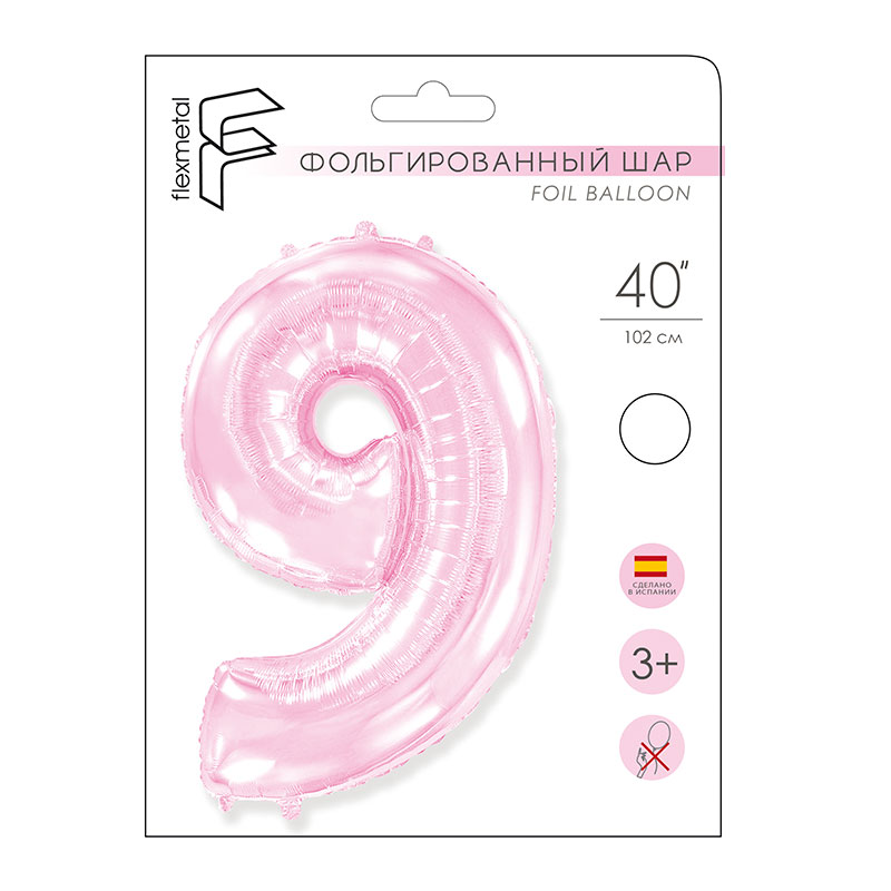И 40 Цифра "9" розовый в упаковке / Nine / 1 шт / Фольгированный шар купить в интернет-магазине по доступной цене