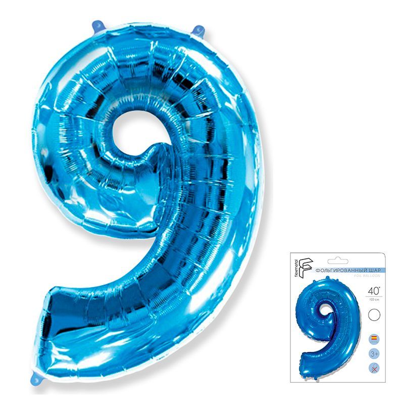 И 40 Цифра "9" синий в упаковке / Nine / 1 шт /, Фольгированный шар купить в интернет-магазине по доступной цене