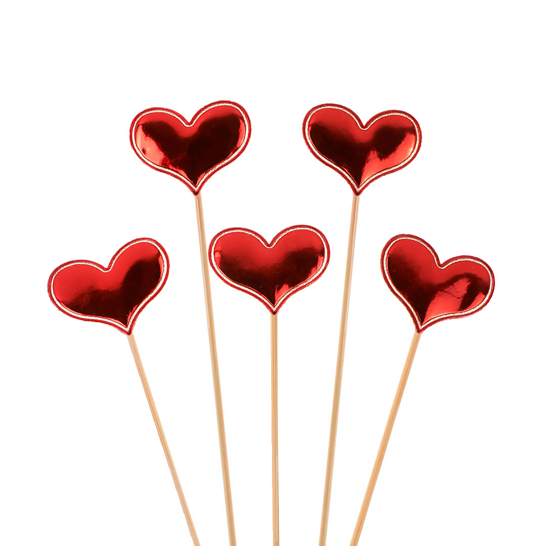 Пики Топперы, Сердечки, Красный, Металлик, 12 см, 5 шт. купить в интернет-магазине по доступной цене