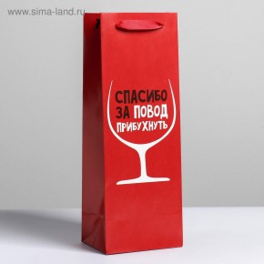 Пакет подарочный ламинированный под бутылку, «Спасибо за повод», 13 x 35 x 10 см купить в интернет-магазине по доступной цене