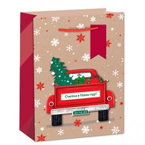 Пакет подарочный "С Новым Годом! Машина с елкой", 31*42*12 см купить в интернет-магазине по доступной цене