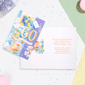 ГлавнаяКаталогКарнавалОткрытки. плакаты. наклейкиОткрытки. конверты для денег, книги пожеланийОткрытка «С Юбилеем 60!», тиснение, конгрев, А4