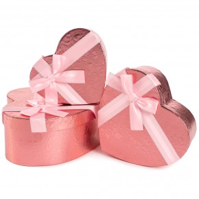 Набор коробок Сердце, Фактурный узор, с бантом, Розовый, 22*20*9 см, 3 шт. купить в интернет-магазине по доступной цене