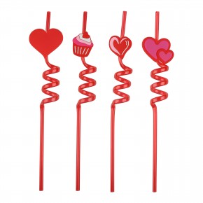 Трубочки для коктейлей (пластик), Сладкая любовь, Красный, 4 шт. в упак. купить в интернет-магазине по доступной цене