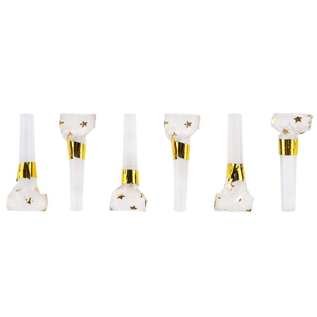 Карнавальные язычки гудки, Звезды Люкс, Белый/Золото, Металлик, 6 см, 6 шт. в упак. купить в интернет-магазине по доступной цене