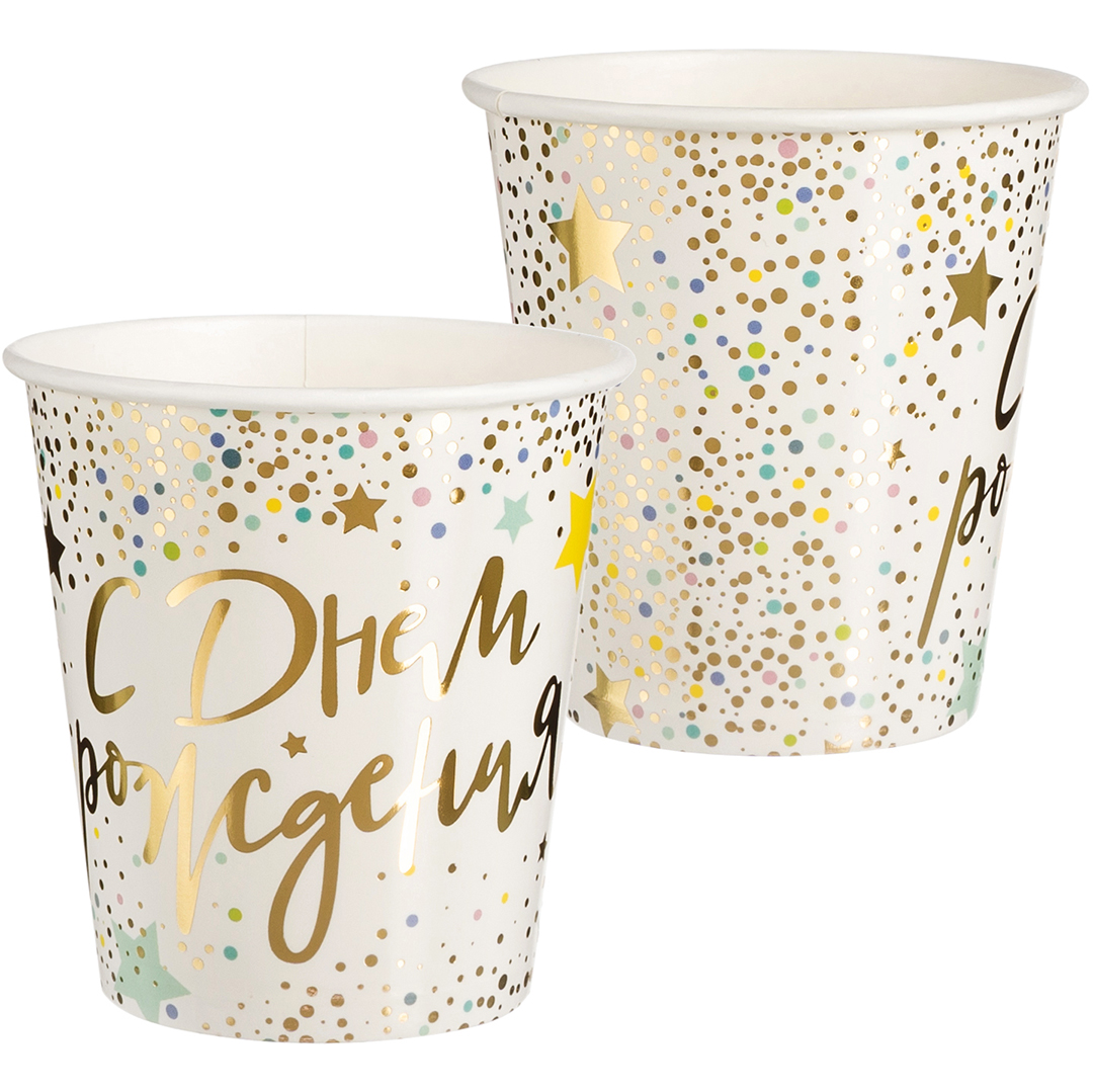 Стаканы (250 мл) С Днем Рождения (сверкающие блестки), Металлик, 6 шт. купить в интернет-магазине по доступной цене
