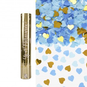 Пневмохлопушка (12/30 см), Гендер Пати, Ура, Мальчик!, Сердца фольга и тишью, Голубой/Золото, Металл купить в интернет-магазине по доступной цене