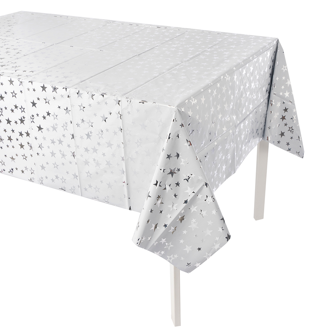 Скатерть одноразовая, Звезды Люкс, Белый/Серебро, Металлик, 137*183 см, 1 шт. купить в интернет-магазине по доступной цене