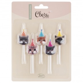 Набор свечей Фигура, Котики, 6 см, 5 шт. с держат. купить в интернет-магазине по доступной цене