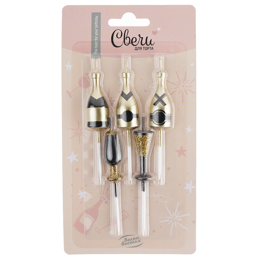 Набор свечей Фигура, Шампанское и бокалы, Ассорти, Металлик, 7 см, 5 шт. с держат. купить в интернет-магазине по доступной цене