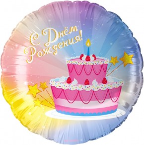 Шар (18''/46 см) Круг, С Днем Рождения! (тортик), 1 шт. в уп., купить в интернет-магазине по доступной цене