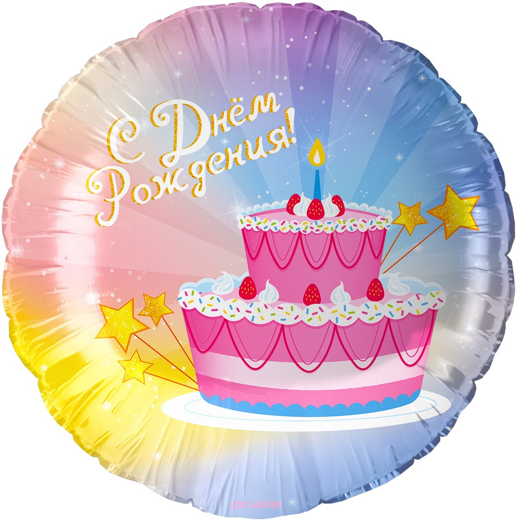 Шар (18''/46 см) Круг, С Днем Рождения! (тортик), 1 шт. в уп., купить в интернет-магазине по доступной цене