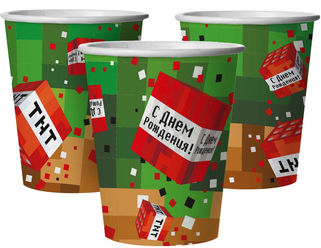 ГлавнаяКаталогКарнавалПраздничные колпачки и сервировкаСтаканы (250 мл) Пиксели, С Днем Рождения!, 6 шт.